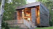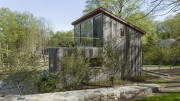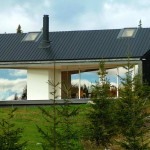 Этот небольшой домик, установленный на недавней лесной вырубке, используется в основном зимой для лыжных прогулок по окружающим лесам. Дом внешне имитирует простую традиционную форму, но имеет довольно сложную и эффективную планировку – все помещения выстраиваются вокруг двусветной общей комнаты: на первом этаже (по часовой стрелке) расположены спальня хозяев, терраса, гостиная, кухня, склад для запасов и лыжного оборудования, прихожая, две детские спальни и ванная, на втором этаже есть ещё спальни, кладовая и детская.