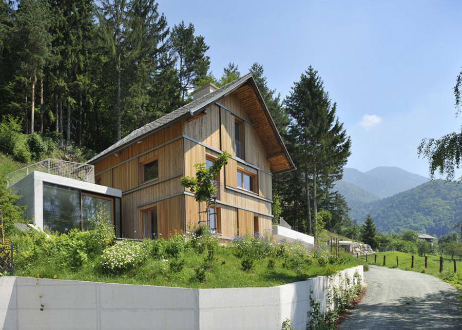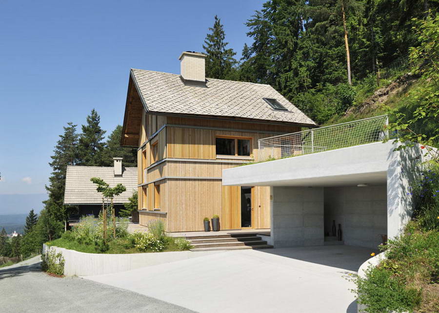 Целью реконструкции и расширения мрачного альпийского шале на живописном склоне у края леса было превращение места временного пребывания и отдыха в современный жилой дом.