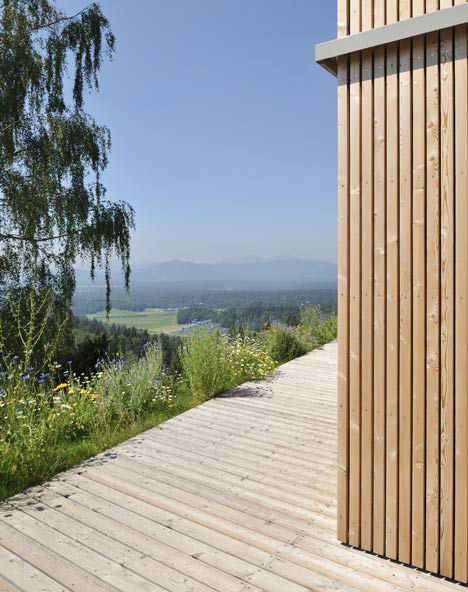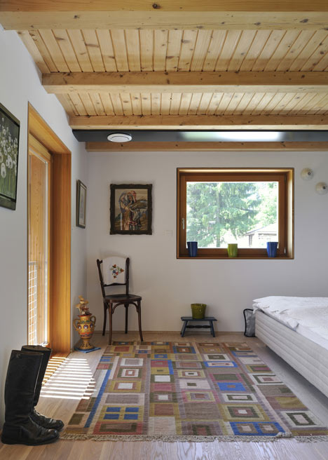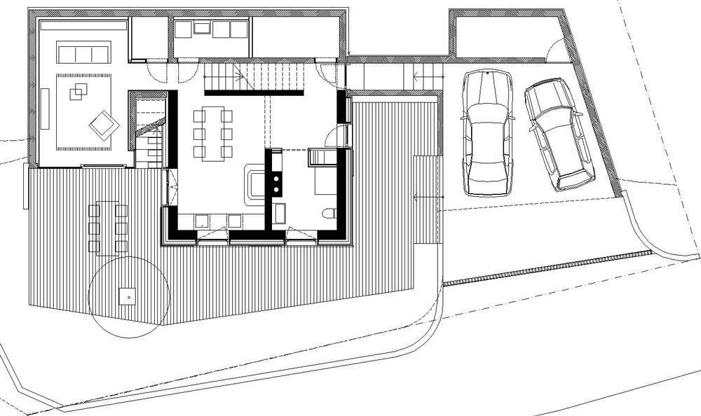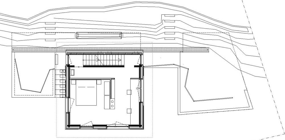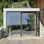 С двух сторон дома были пристроены спальня с входной группой, гараж и терраса, а плоские крыши пристроек стали зелёными газонами.