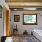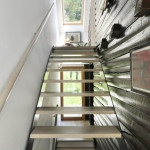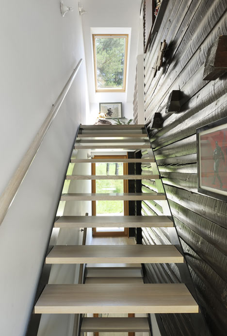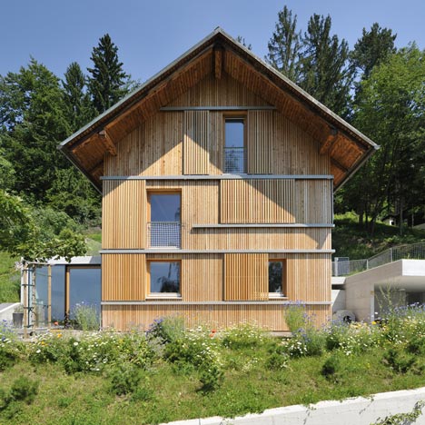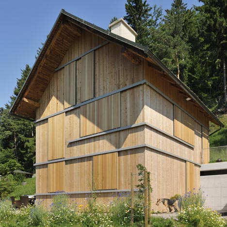 Дом получил новую деревянную и тёплую оболочку с эффектными динамичными жалюзи в виде раздвижной головоломки, при этом изоляция внутри была полностью удалена, что позволило немного расширить полезную площадь.