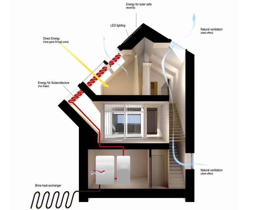 Этот односемейный дом разработан в рамках общеевропейского эксперимента компании VELUX «Модель дома 2020?, который исследует прогрессивные и устойчивые методы строительства для сохранения окружающей среды. Этот проект — один из шести домов в пяти странах Европы.