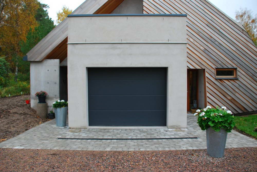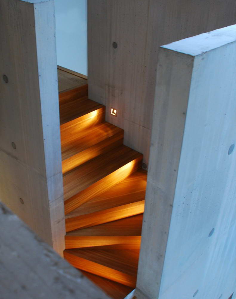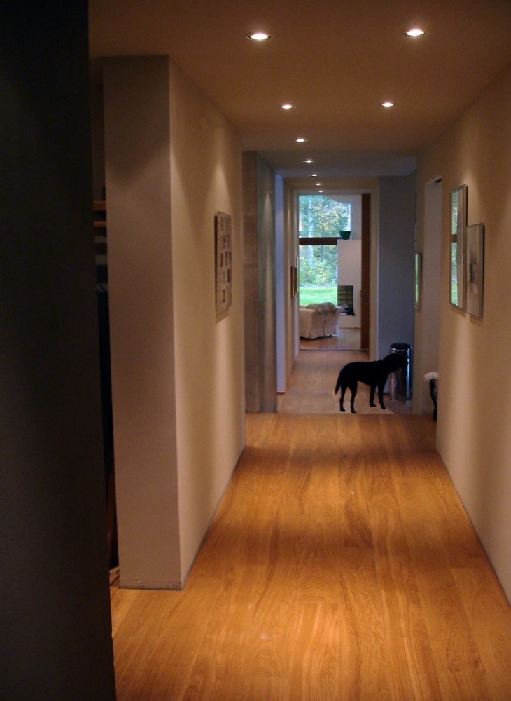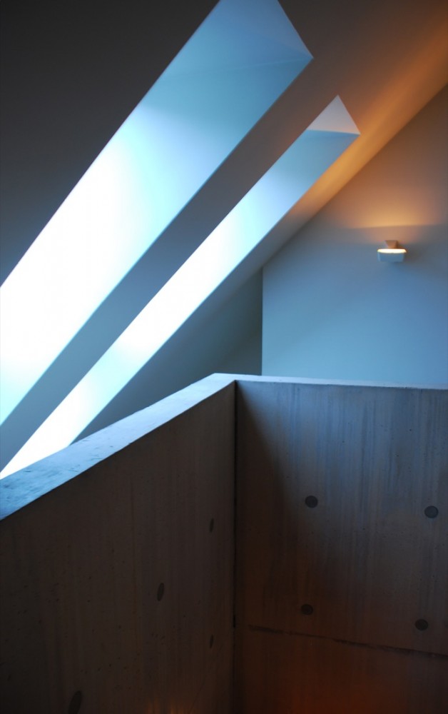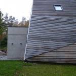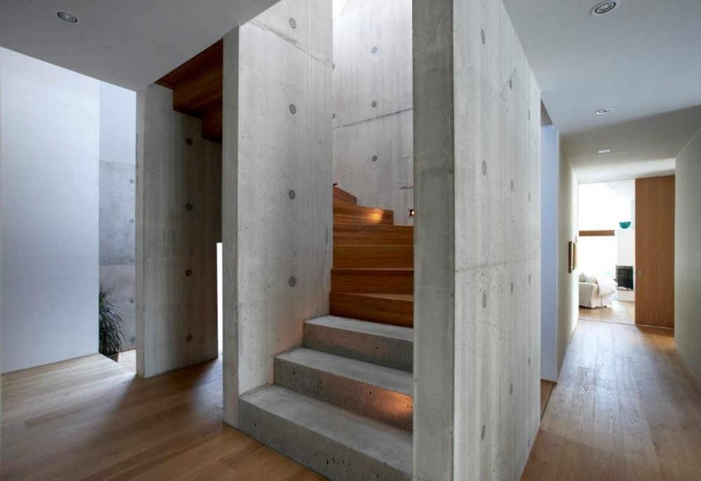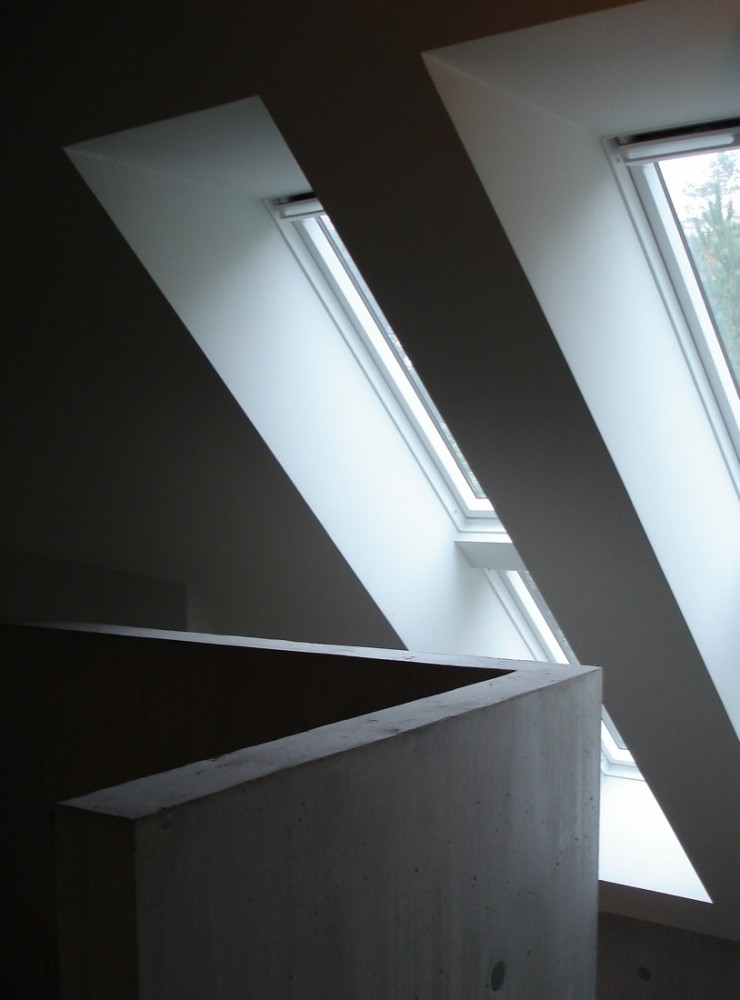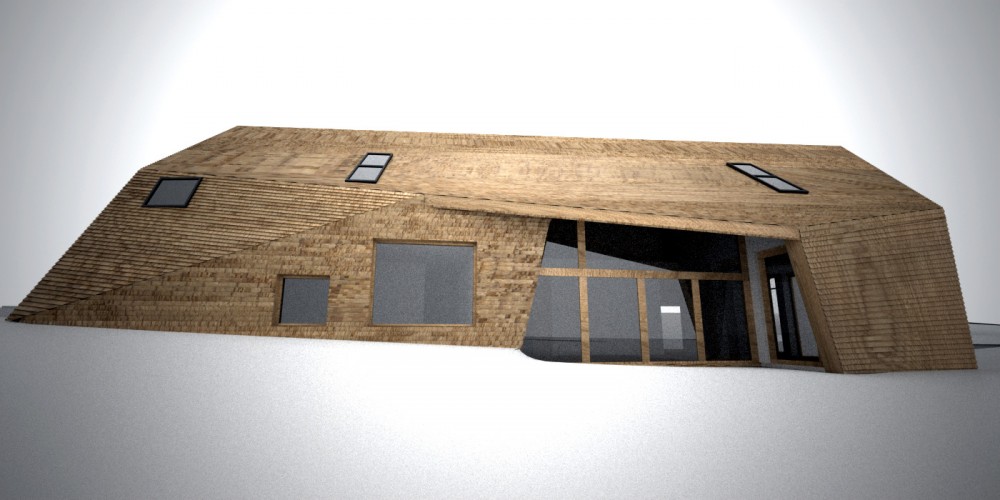 Целью проекта является использование конкретных условий участка для достижения гармонии между природой и домом. Проектирование началось с тщательного анализа ландшафта, топографии участка, изучения сезонных цветовых палитр, солнечного воздействия, розы ветров и видов на окружающий пейзаж. Бетонная несущая конструкция здания акцентируется в решениях интерьера. Снаружи дом плотно заключён в деревянную оболочку.