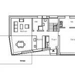 На первом этаже расположен гараж и общая зона, включая двусветную гостиную. На втором этаже — три спальни.