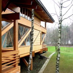 Другая проблема заключалась в том, что остекление было вставлено в образовавшиеся треугольники между деревянными стойками и раскосами. Мы не учли, что дерево как живой материал, склонно к движению от различных внешних условий. Из-за этого с течением времени стали возникать щели. Теперь мы никогда не вставляем остекление между деревянными конструкциями, а делаем его снаружи.