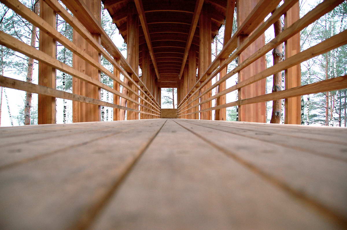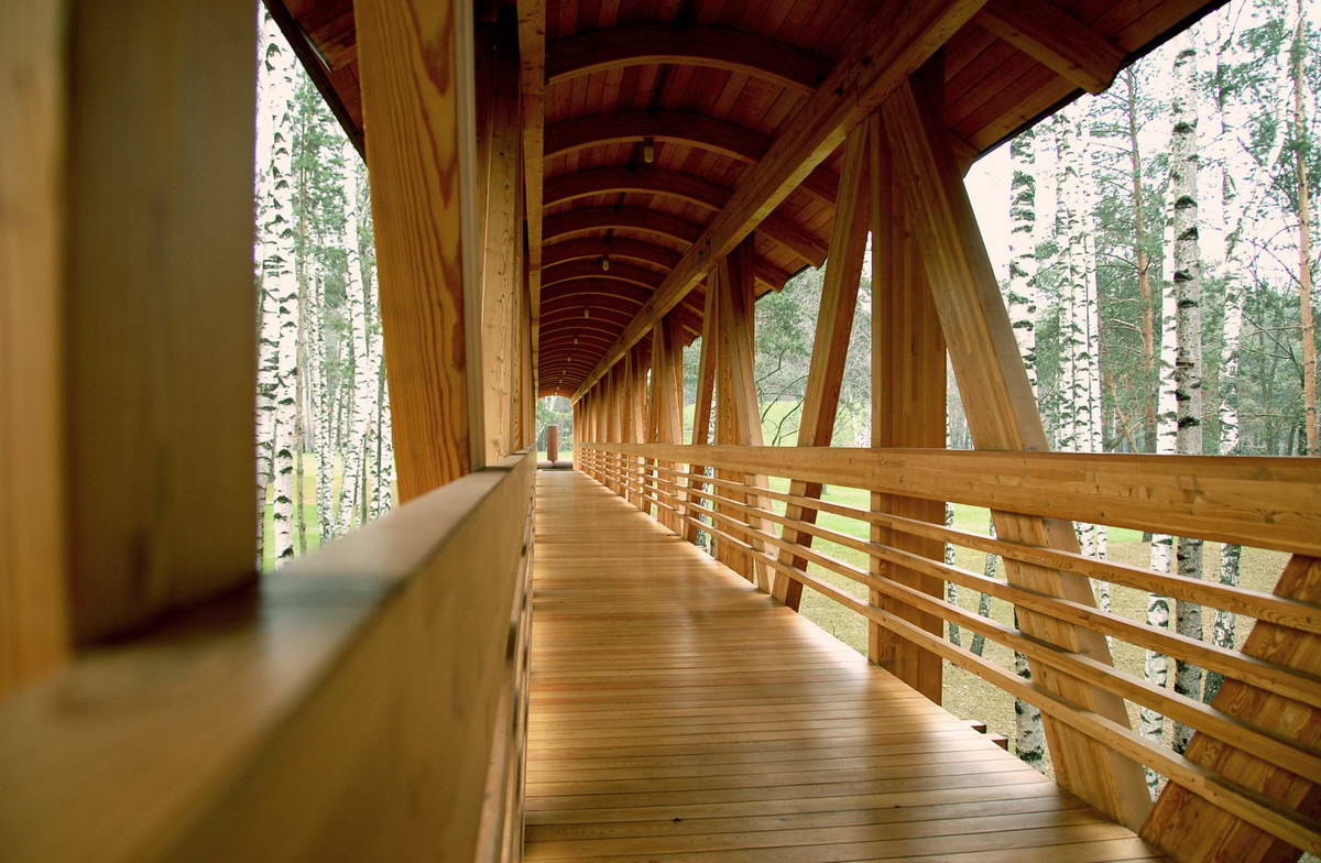 Тотан Кузембаев о проекте: «Дом-мост был нашим первым крупным проектом из дерева, на нем учились и экспериментировали. Главным образом нам очень повезло с заказчиком — он четко знал, что хочет получить в результате и готов был рисковать и делить ответственность за результат эксперимента. Но не все желания удалось реализовать. Например, газон на кровле, оказался невыполнимой задачей. Он сильно утяжелил бы конструкцию, которая к тому времени уже была рассчитана без учета грунта.
