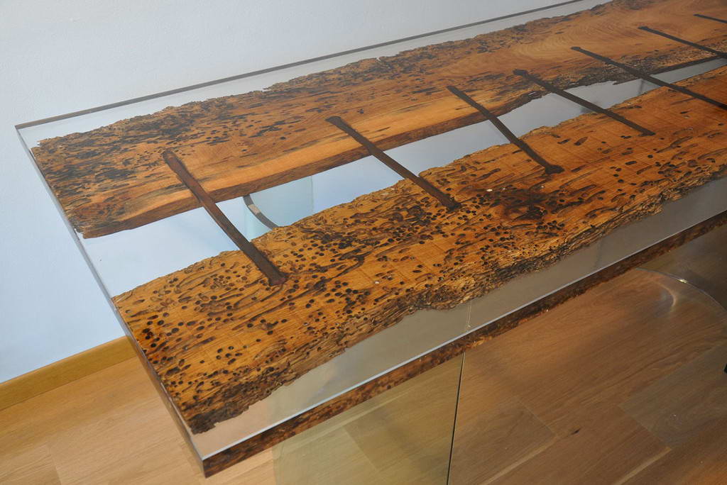 Технология, предложенная Antico Trentino, позволяет раскрыть и законсервировать лучшие черты этого необычного и редкого материала. По такой же технологии можно изготавливать мебель из обычного дерева.