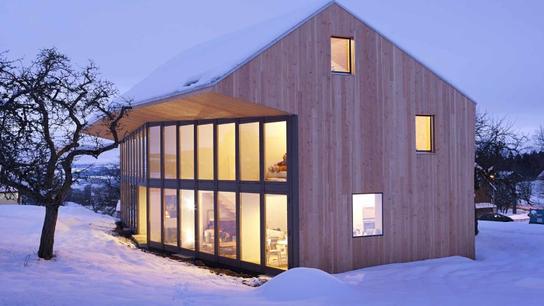 Этот компактный жилой дом построен недалеко от лыжного клуба для семьи, любящей лыжный спорт и современное искусство.