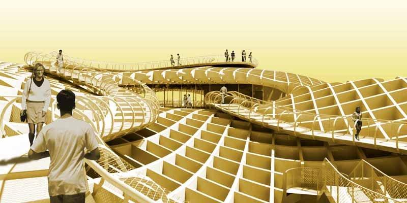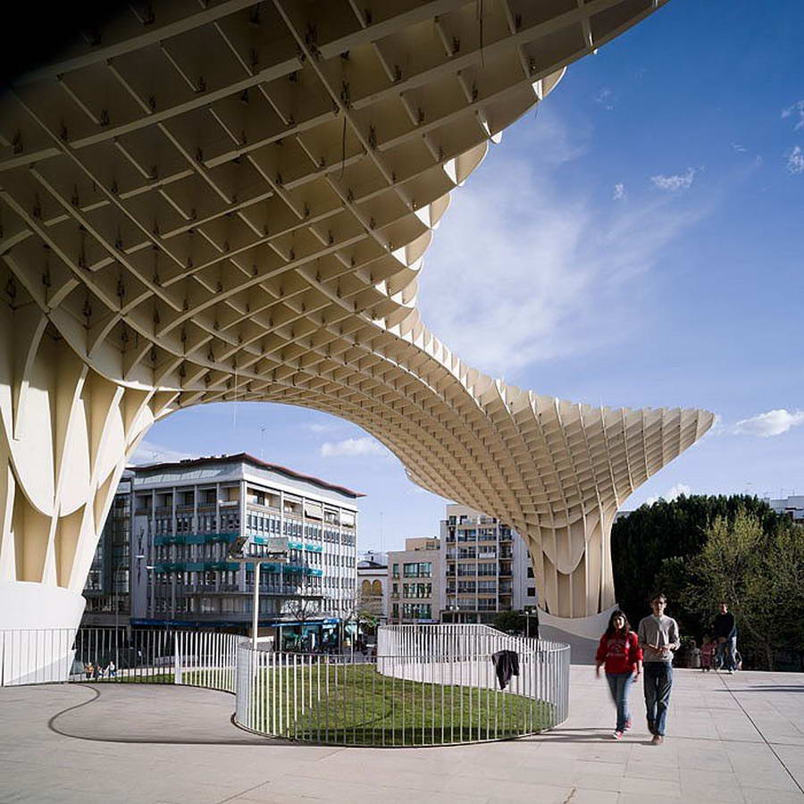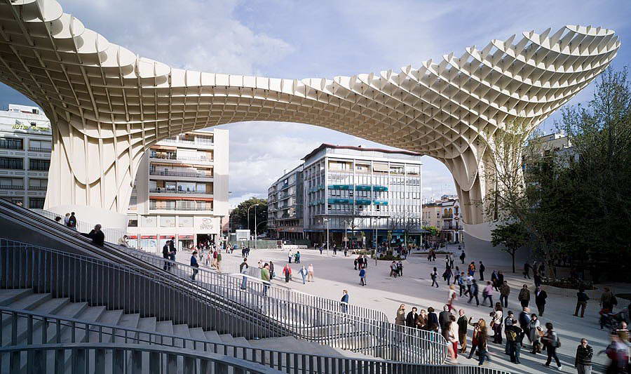 Многофункциональный комплекс Metropol Parasol в Севилье, разработанный бюро J. Mayer H. Architects, стал одним из крупнейших деревянных сооружений в мире.