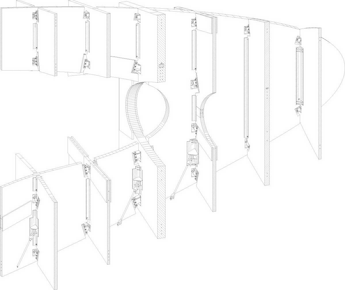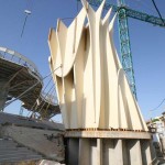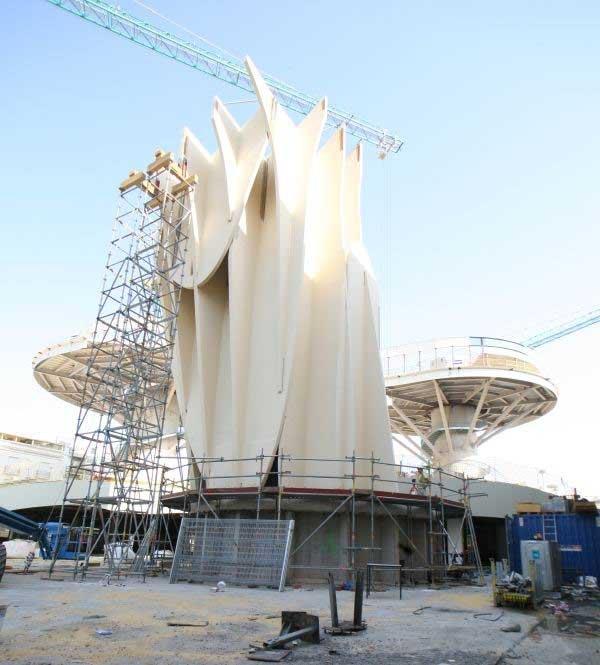 Несмотря на футуристический дизайн, для строительства объекта используются самые простые материалы — конструкцию фиксирует бетонное основание, а декоративные «стволы» и «шляпки» выполнены из дерева, покрытого полиуретаном.