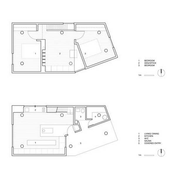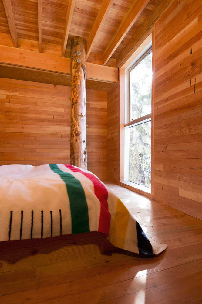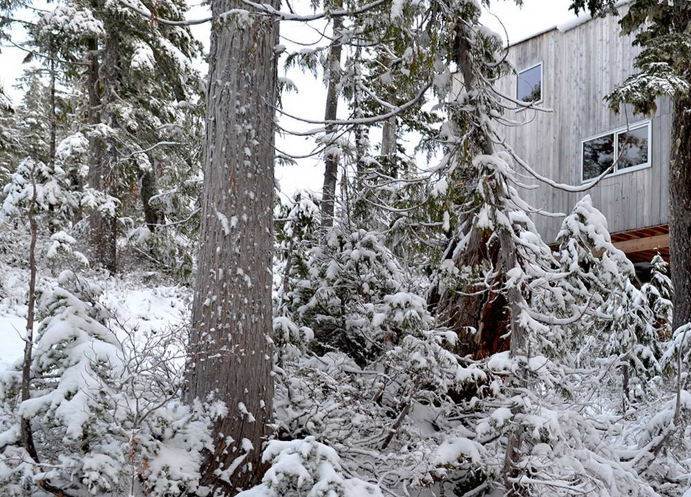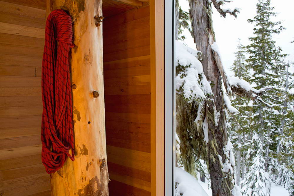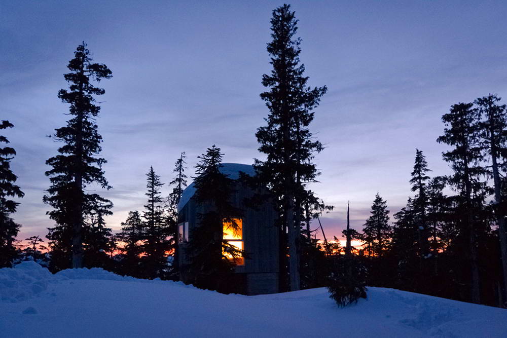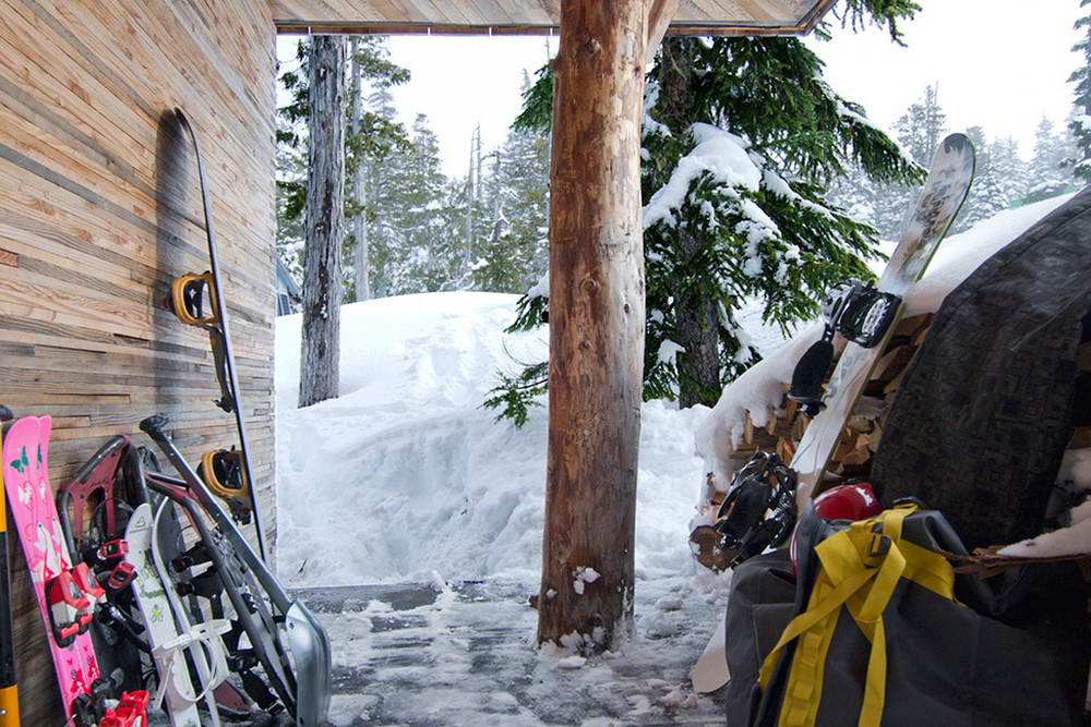 Этот небольшой деревянный домик архитекторы из ванкуверской студии Scott & Scott Architects построили в лесном окружении на высоте 1300 метров над уровнем моря для себя и своих друзей. Домик находится в альпийской зоне и доступен по гравийной дороге около пяти месяцев в году, остальное время — по снегу на санях. В связи с этим он предназначен в основном для активного зимнего отдыха, прежде всего катания на сноуборде. Фактически это зимняя дача.