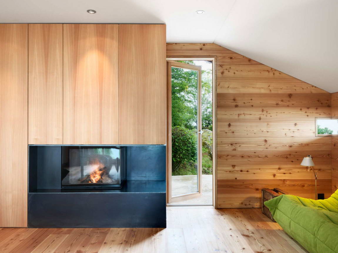 Первоначально это был простой сарай, расположенный за пределами небольшой горной деревни. Первый проект реконструкции снаружи был отклонён, как противоречащий местным регламентам. В результате все работы, включая изоляцию, были произведены только внутри, а снаружи здание осталось в первоначальном виде. Сам дом небольшой, внутренняя отделка и мебель выполнены из одного материала, что визуально слегка увеличивает внутренний объём.