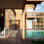 Свои пожелания к будущему жилищу заказчик сразу определил очень четко: это должен быть бревенчатый, но современный дом. Причем под современным клиент подразумевал не только архитектурную стилистику сооружения, но и его планировку – в частности, центром внутренней жизни должно было стать светлое многофункциональное пространство, а снаружи дом необходимо было дополнить гаражом, просторными террасами и бассейном. «Задача сразу показалась мне интересной, поскольку заказчик был искренне очарован стилистикой бревенчатых домов, но к собственному жилью выдвигал требования, с типологией избы в принципе не совместимые, – рассказывает Роман Леонидов. – Для того, чтобы воплотить эти пожелания в реальность, нам пришлось разработать необычную конструктивную схему и очень тщательно подойти к вопросу планировки дома».