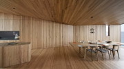 Этот современный деревянный дом построен в небольшой деревне в середине северного побережья штата Новый Южный Уэльс, в месте, где сочетаются дома для постоянного проживания и дачи, на полпути между озером Уоллис и Тихим океаном.