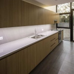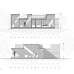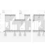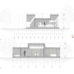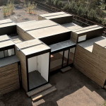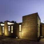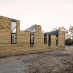 Это одноэтажный дом с плоской крышей. При проектировании архитекторы исходили из возможностей и стандартов производственной компании, изготавливающей деревянные конструкции. В результате появились два модуля по ширине (2,44 и 4,88 метра) и два по высоте. В плане это выразилось в четырёх параллельных «проходах» — в узких блоках расположены сантехнические помещения и кухня, в широких — общая комната со столовой и три спальни. Чередование низких и высоких блоков придаёт эффектный ритм всему зданию, а также увеличивает кубатуру помещений и добавляет верхнее естественное освещение.