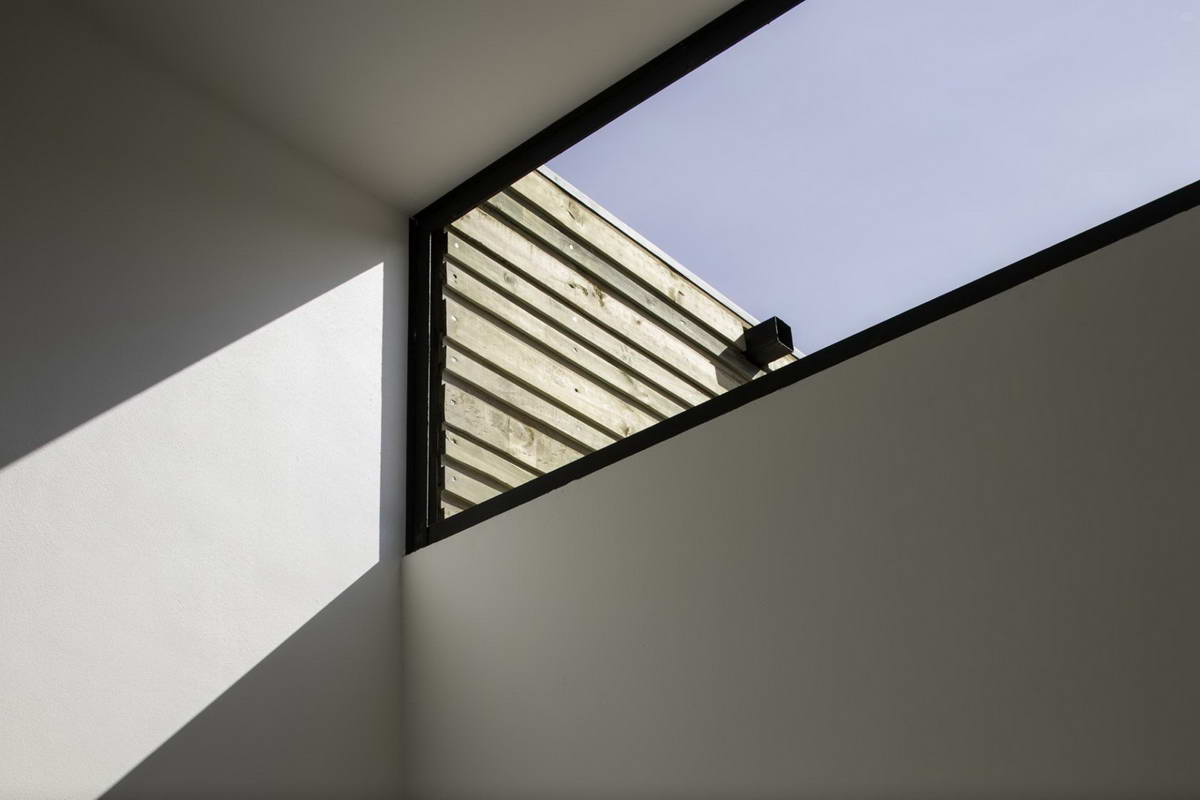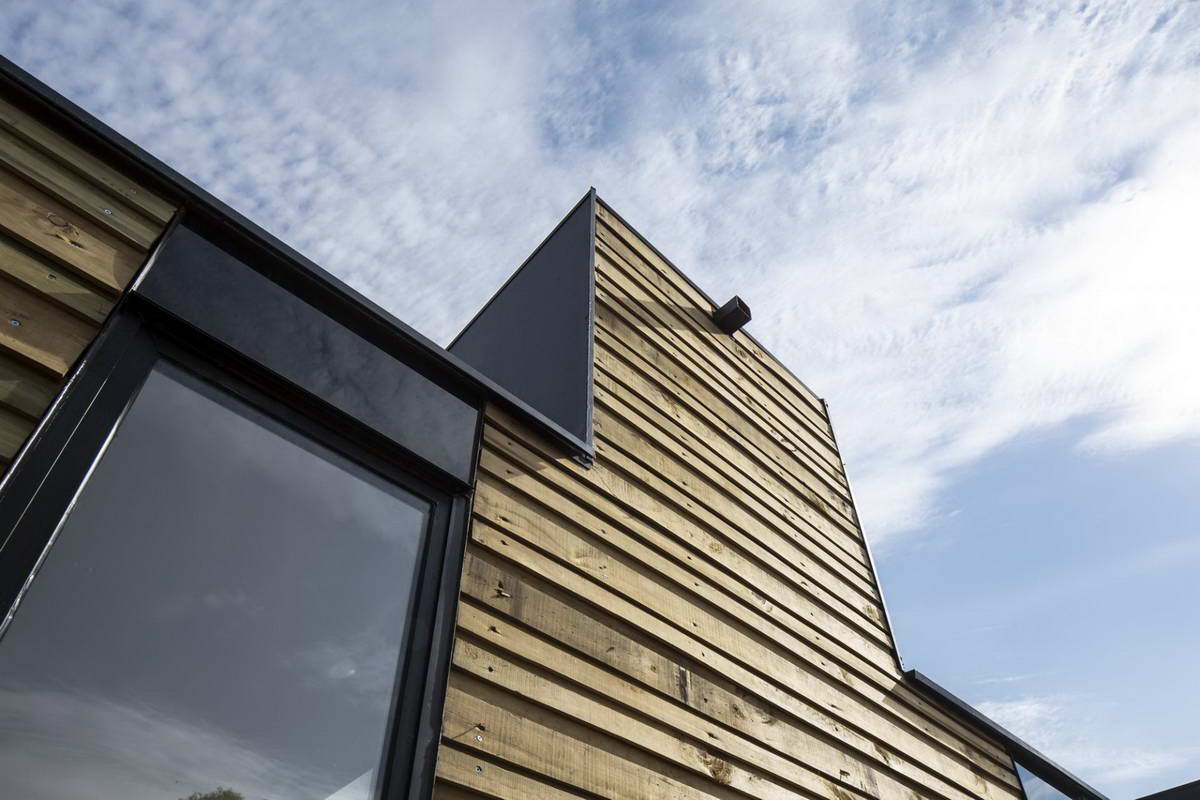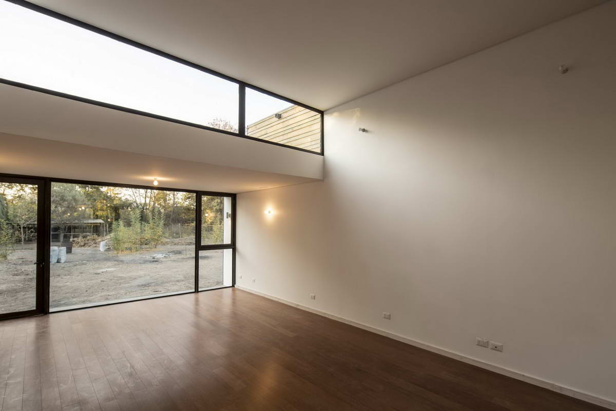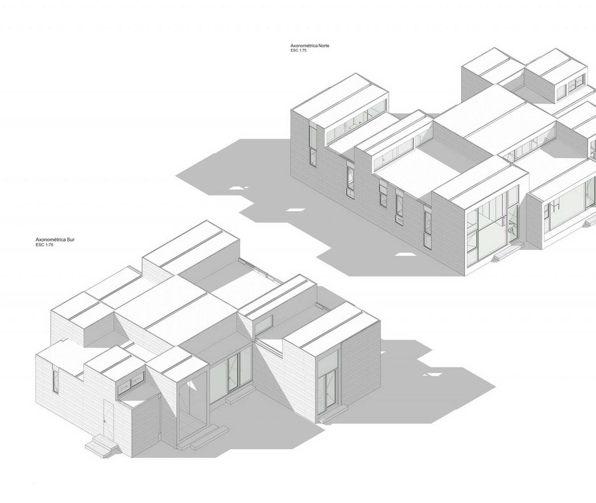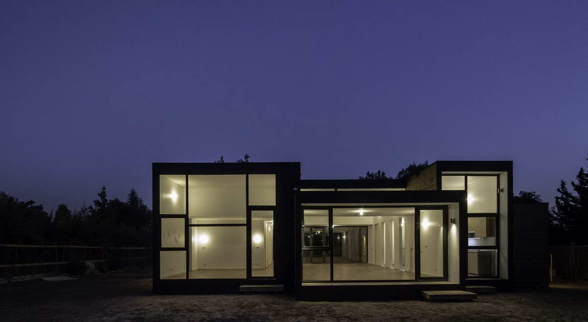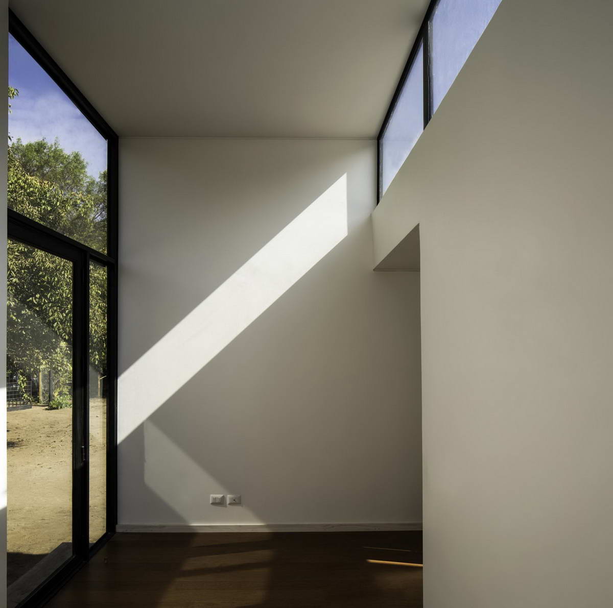 Это одноэтажный дом с плоской крышей. При проектировании архитекторы исходили из возможностей и стандартов производственной компании, изготавливающей деревянные конструкции. В результате появились два модуля по ширине (2,44 и 4,88 метра) и два по высоте. В плане это выразилось в четырёх параллельных «проходах» — в узких блоках расположены сантехнические помещения и кухня, в широких — общая комната со столовой и три спальни. Чередование низких и высоких блоков придаёт эффектный ритм всему зданию, а также увеличивает кубатуру помещений и добавляет верхнее естественное освещение.