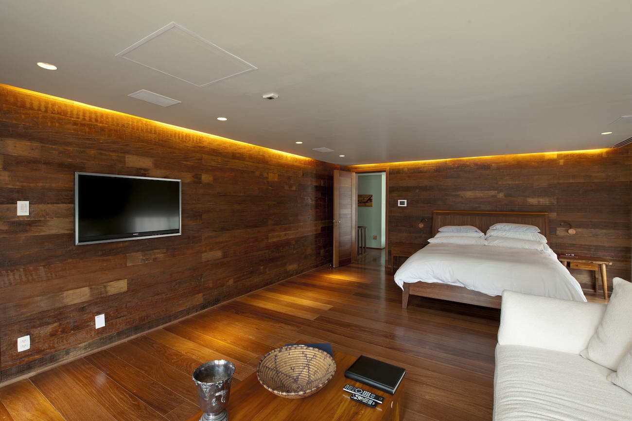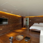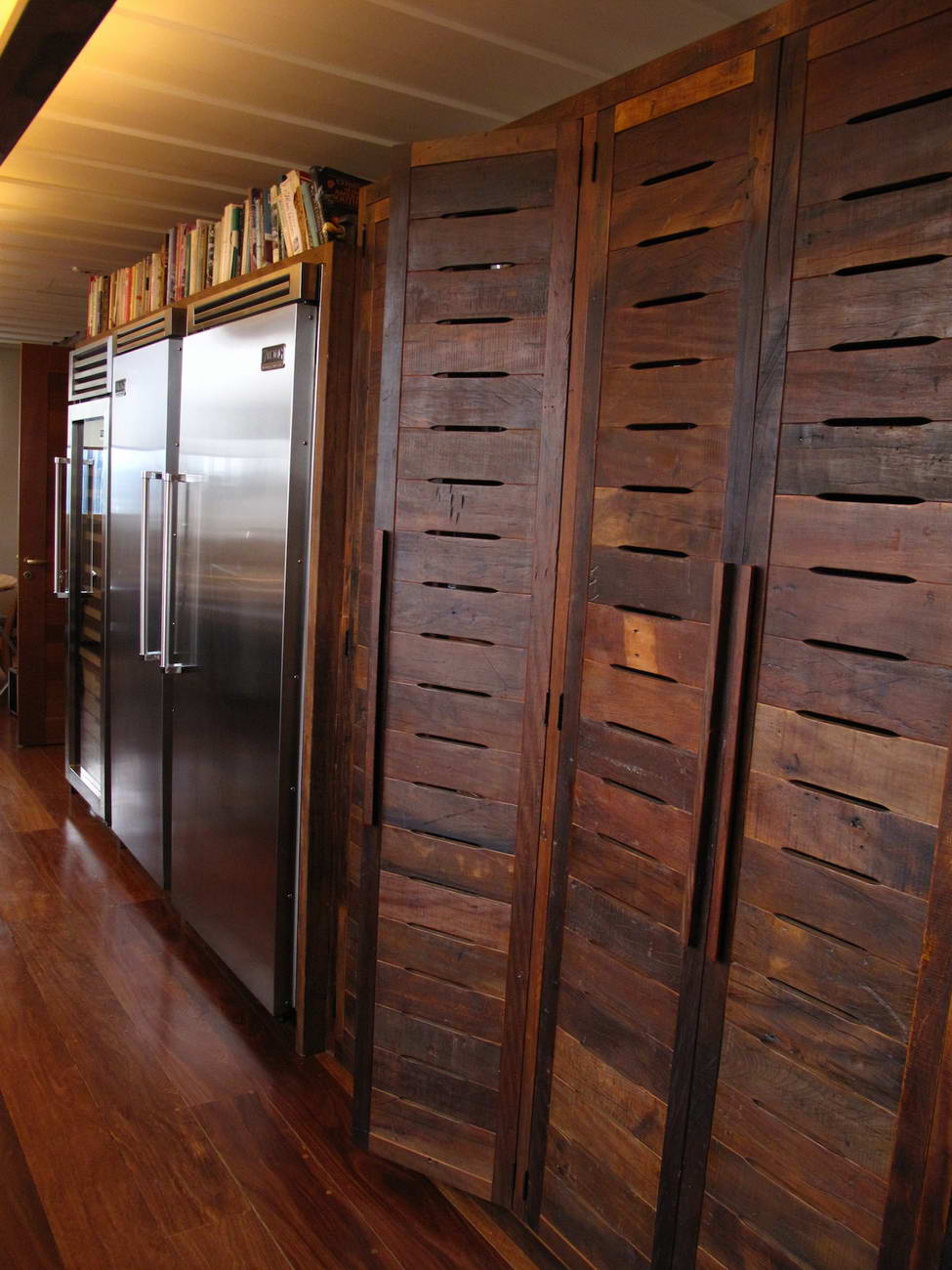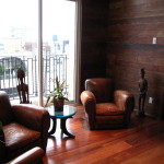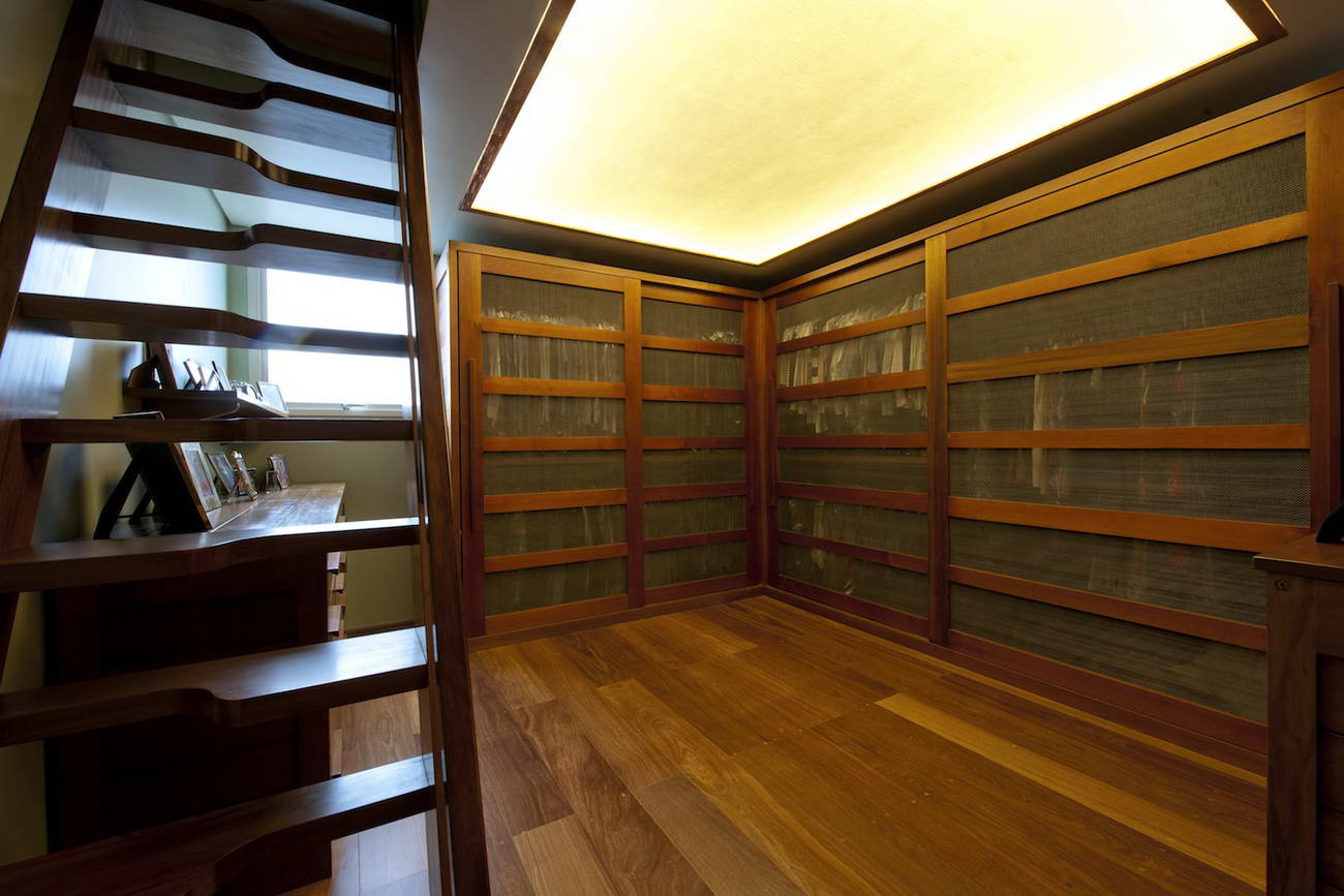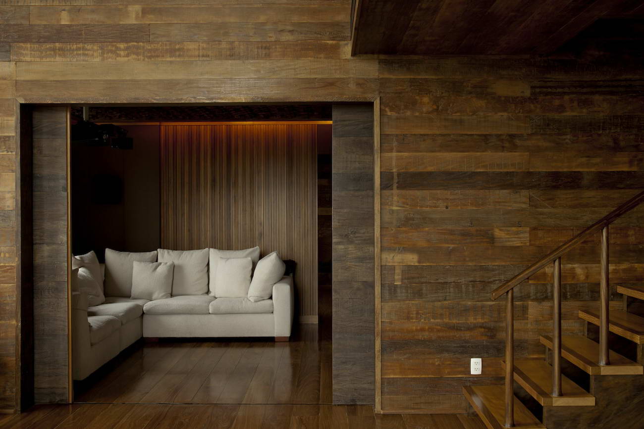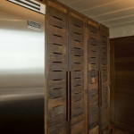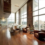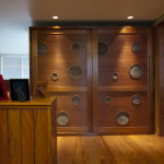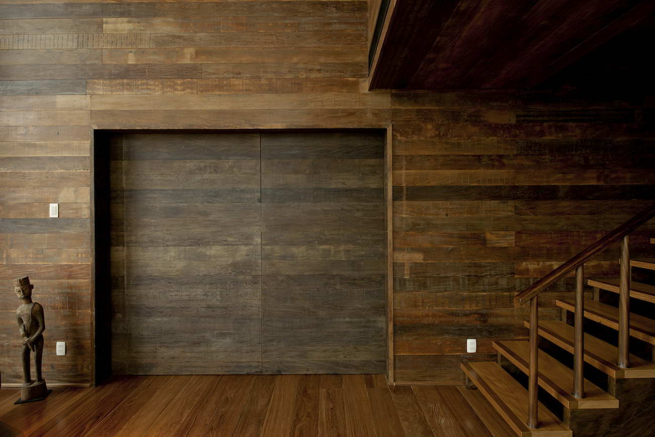 Использованы различные сорта местных пород, с преобладанием тёмных тонов, что делает интерьер невероятно богатым и уютным, заставляя забыть о том, что находишься в центре многомиллионого города.