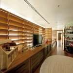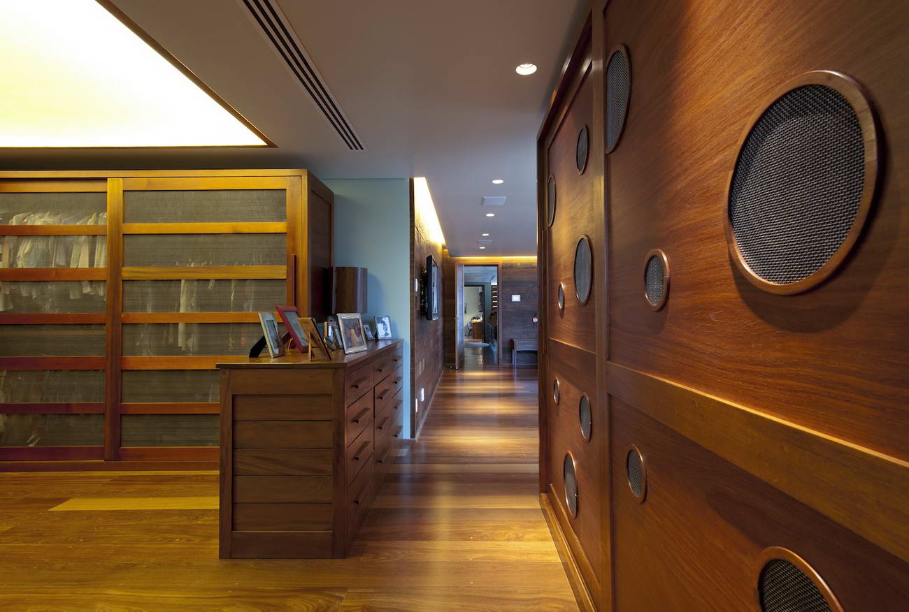 Её главной особенностью стало тотальное доминирование дерева в отделке. В квартире деревянные не только полы, но и стены, потолок, элементы декора и большая часть мебели.