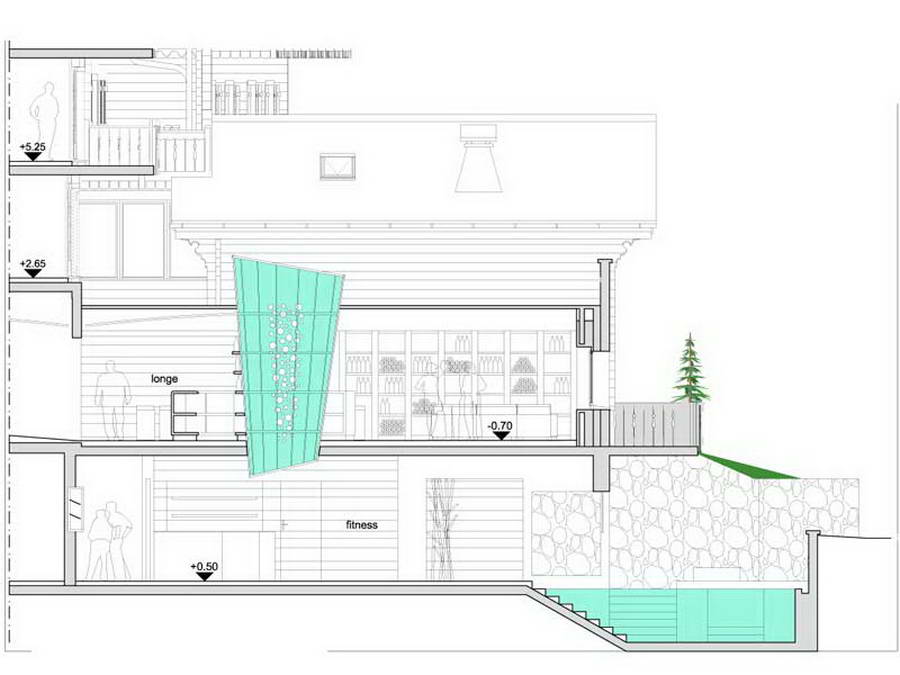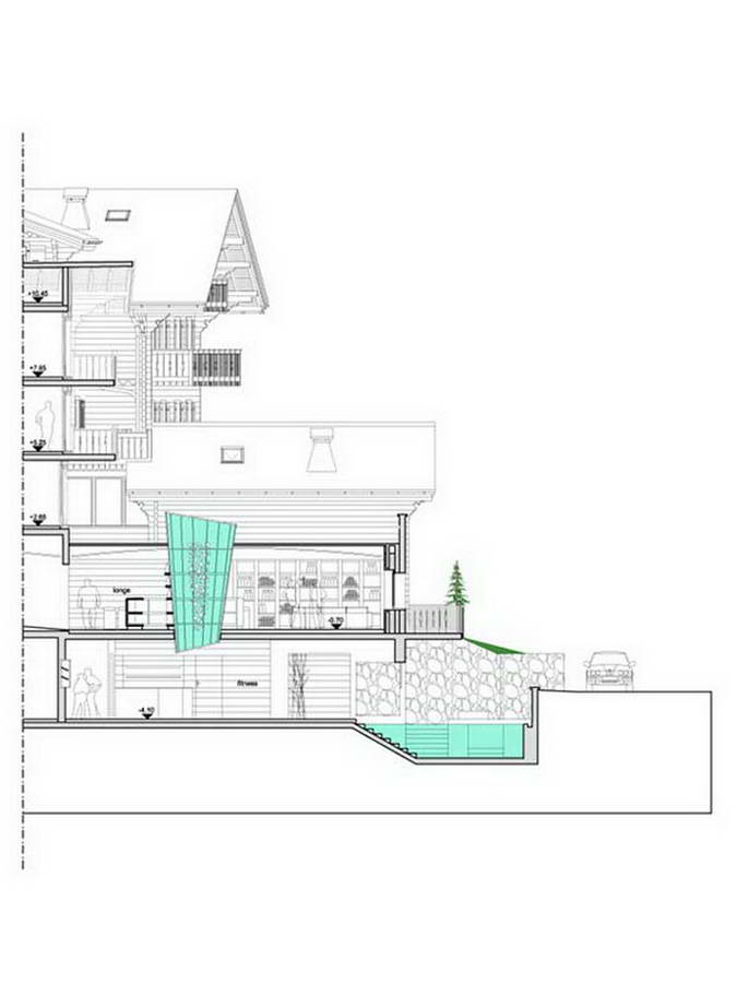 Внешне это традиционное деревянное альпийское шале, предназначенное для сдачи апартаментов в аренду. Путешественникам и отдыхающим предлагается изысканный деревянный интерьер, высочайший комфорт и неповторимый вид на Альпы. Основные материалы — дерево местных пород и камень — контрастируют элементами из стекла и металла. Комплекс дополнительных услуги предлагается в соседней гостинице.