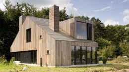 Дом выполнен с учётом современных экологических и энергосберегающих стандартов и отделан снаружи досками из ели, которые за три года приобрели удивительный серебристо-серый оттенок.