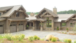 Этот роскошный особняк, расположенный на крутом склоне рядом с густым хвойным лесом, выполнен в характерной для Северной Америки стилистике